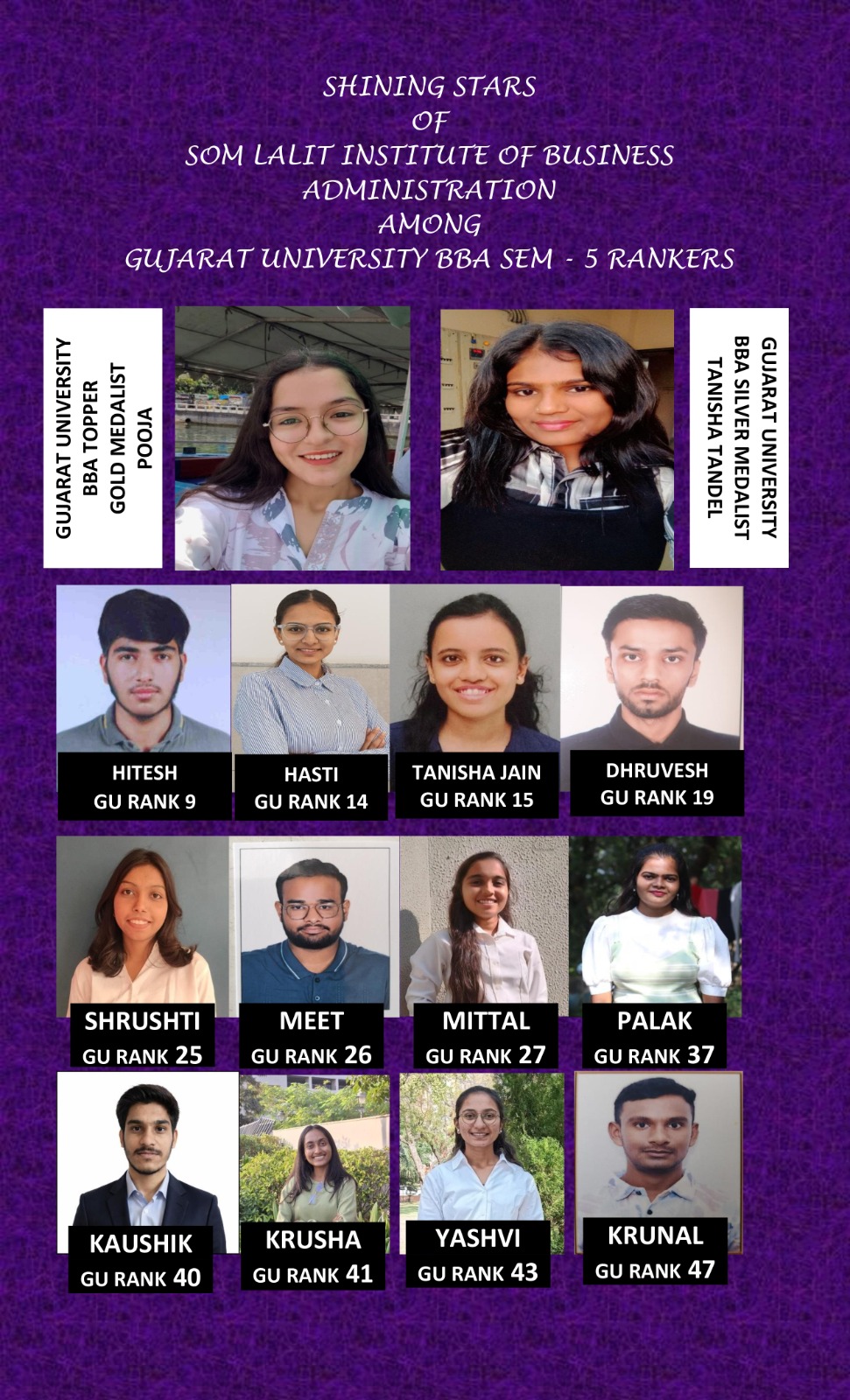 #gujaratuniversitytop50 #toprankers #poojagold #studentsuccess #ahmedabadexcellence #gujaratuniversitybba #bachelorofbusinessadministration #historyrepeated #excellenceisahabit #goldmedalist #silvermedalist #proudmoment #successstory #universitytoppers